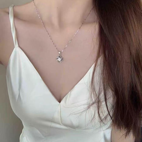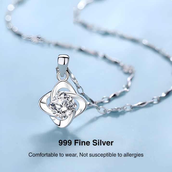Answer 1: The necklace is crafted from high-quality 999 silver, ensuring durability and a stylish shine. The clover pendant is adorned with premium crystal accents for an added touch of elegance.